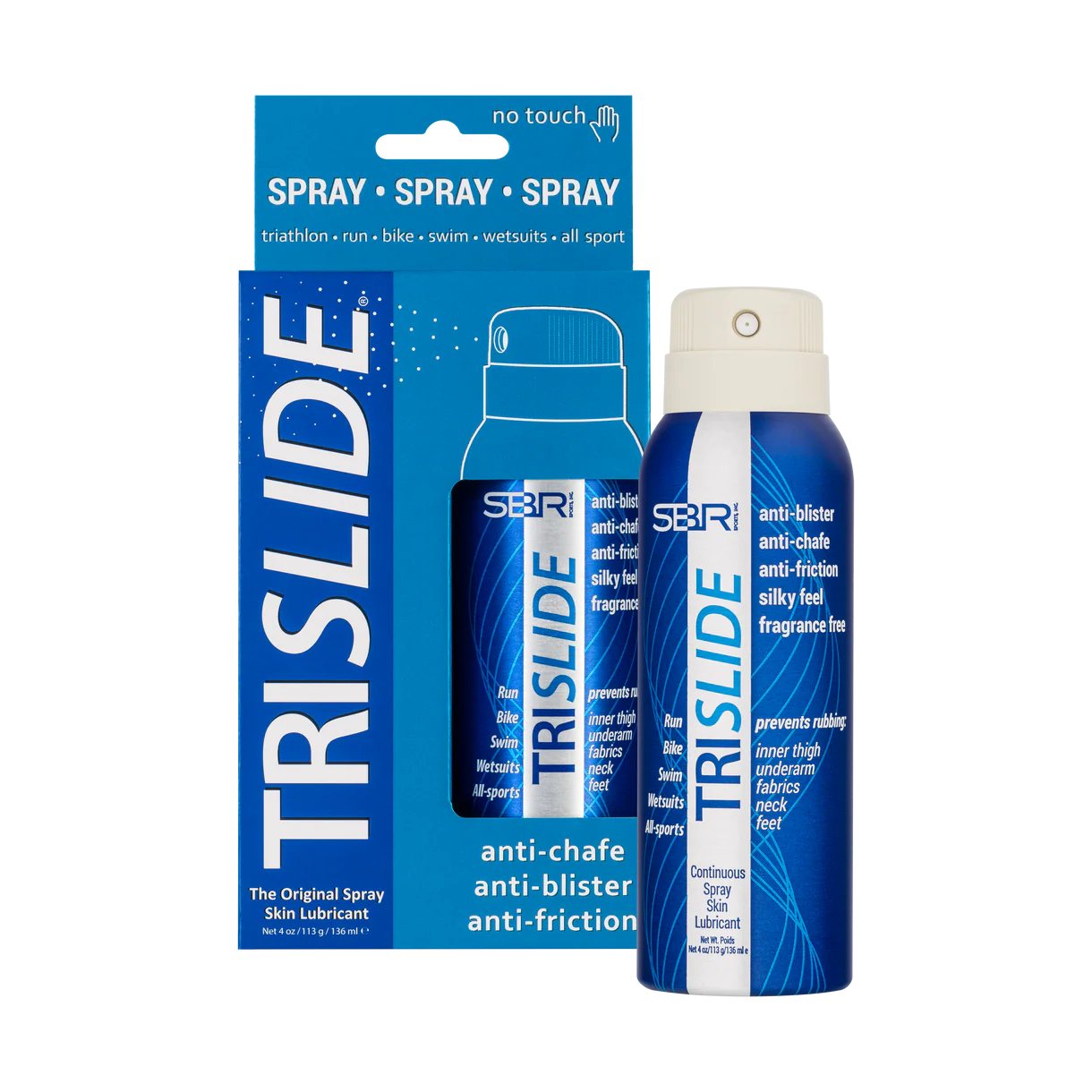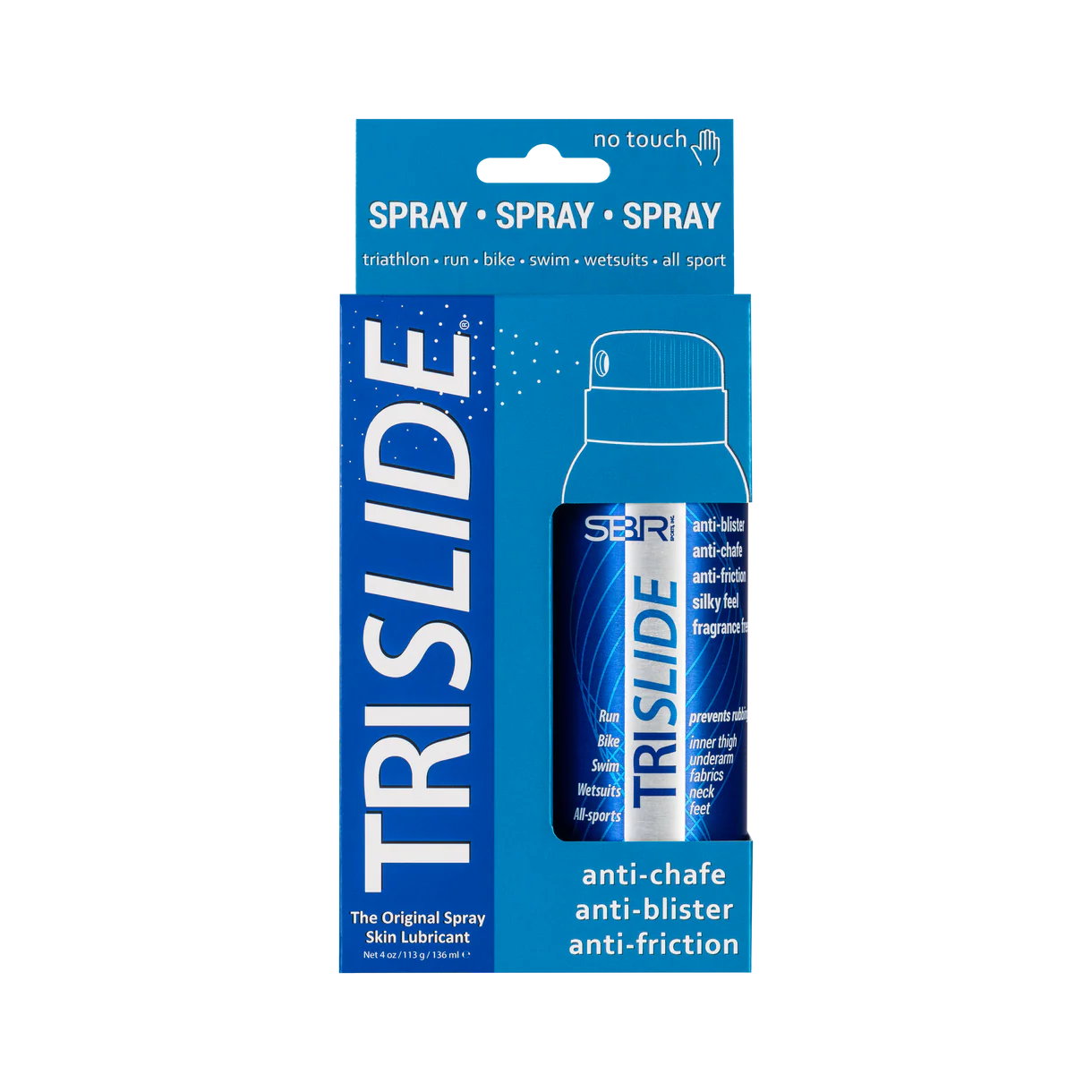 TRISLIDE é o ÚNICO produto anti-atrito, anti-bolhas e anti-assaduras num prático spray aerossol ecológico. Adeus às mãos pegajosas! A aplicação contínua do spray TRISLIDE é fácil de usar e segura para partilhar!